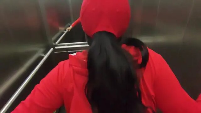 Neighbors get naughty in elevator: Dada Deville rides cock and blows it too