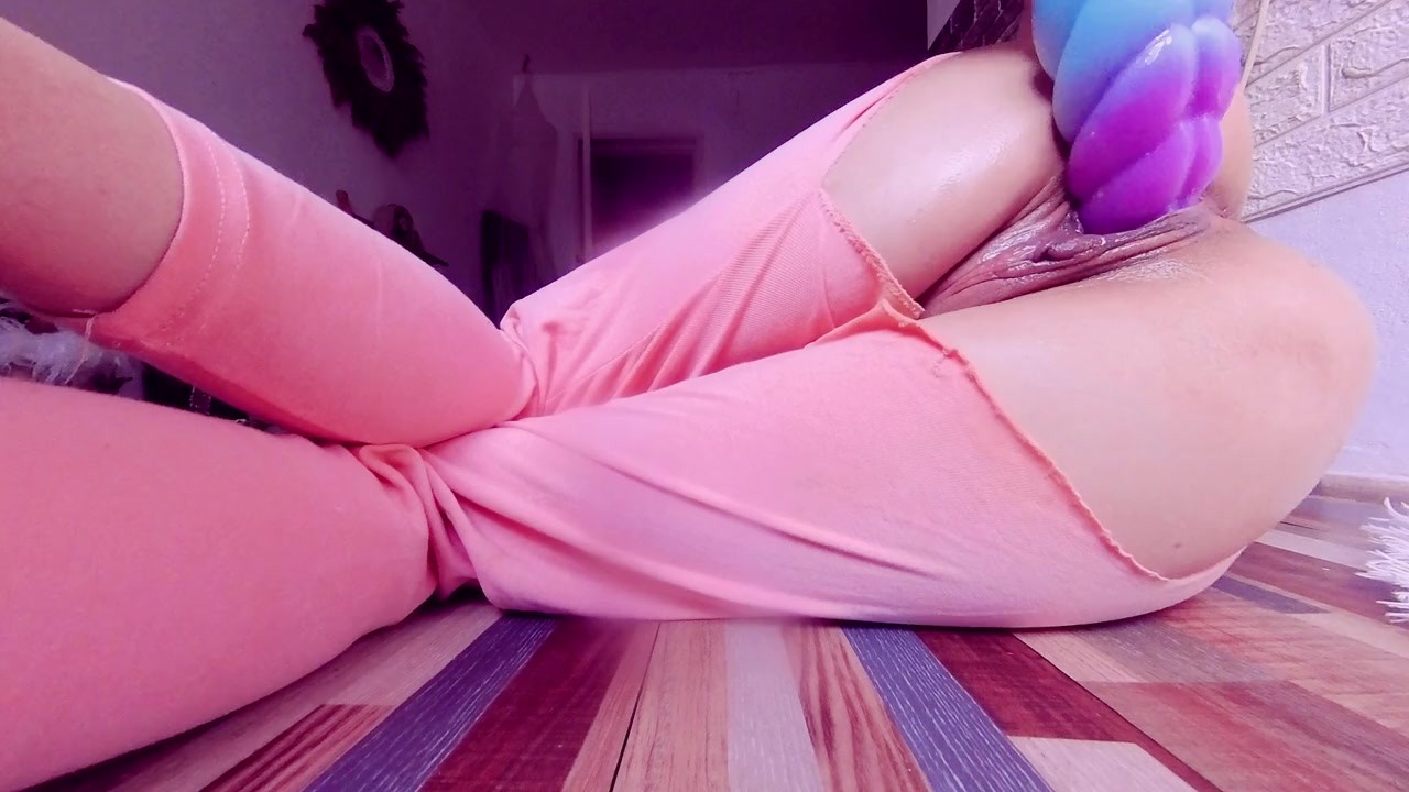 Shy Petite Girl Masturbates and Squirts in Ripped Pink Leggings