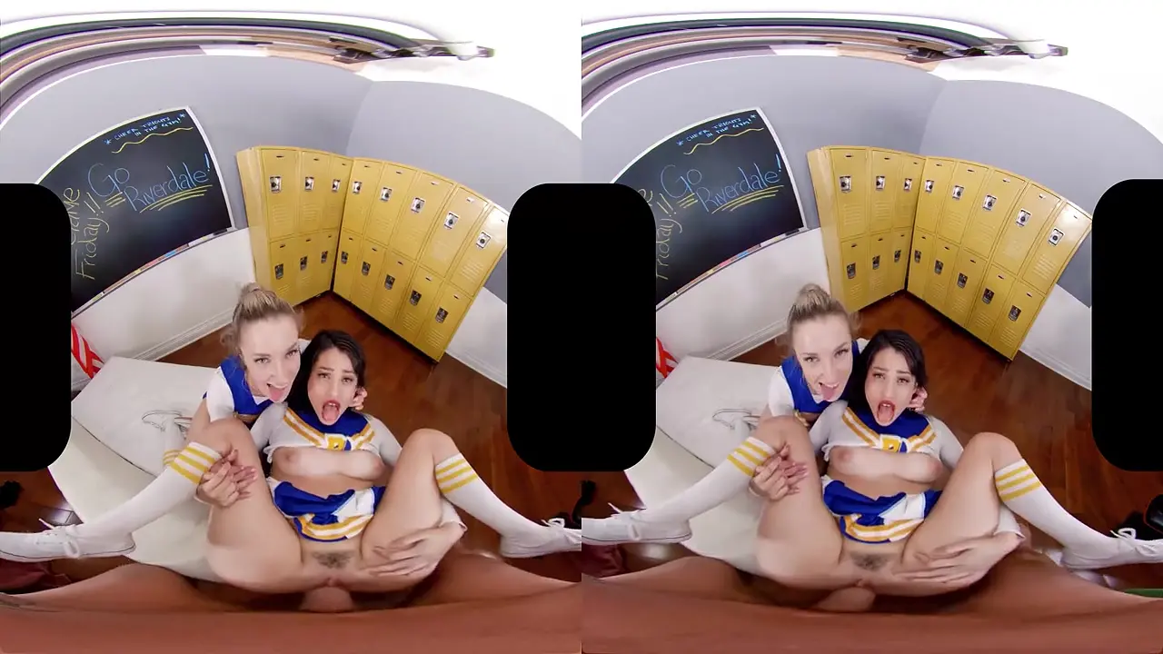 In a locker room, two hot cheerleaders, Betty and Veronica, have their fun with two lucky guys. They take turns deepthroating their huge cocks while showing off their natural boobs. The guys pound them hard in cowgirl and reverse cowgirl positions before giving them both delicious creampies.