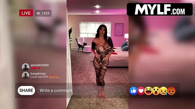 Lola Pearl seduces with fiery passion, her big boobs bouncing as she takes you deep with a big cock🌭. Kissing, fingering👉, and flashing in high heels, she dominates in doggystyle with fake tits, Latin heat, and a stepson twist—pure milf magic.