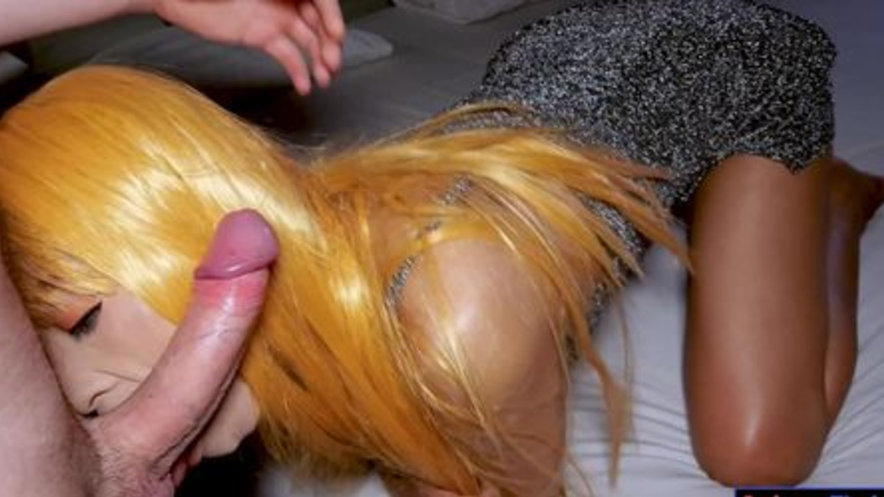 Asian blonde bargirl gives a deepthroat blowjob with big shaft POV. She moans and swallows his load before getting fucked in doggystyle. He pounds her hard, leaving her cum-filled.